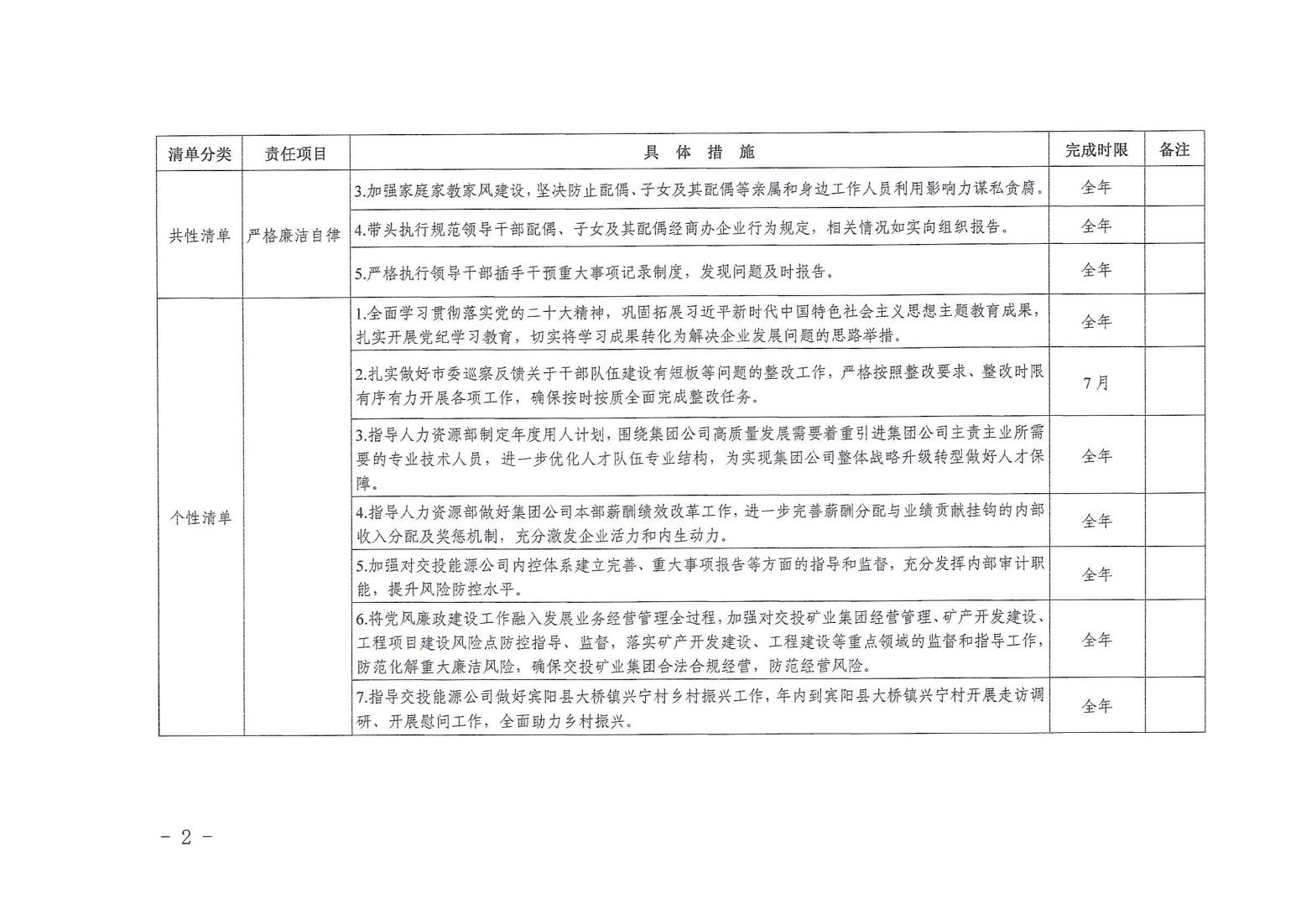 領導班子其他成員2024年度黨風廉政建設“一崗雙責”清單(六)