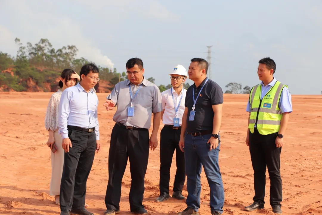 為進(jìn)一步推進(jìn)項(xiàng)目建設(shè),解決存在的問題,5月12日下午,集團(tuán)公司黨委書記、董事長(zhǎng)、總經(jīng)理?xiàng)顫i帶領(lǐng)交投園區(qū)公司黨支部書記、董事長(zhǎng)陳海華,投資發(fā)展部、項(xiàng)目部及項(xiàng)目參建單位的有關(guān)人員到項(xiàng)目現(xiàn)場(chǎng)檢查指導(dǎo)工作。
