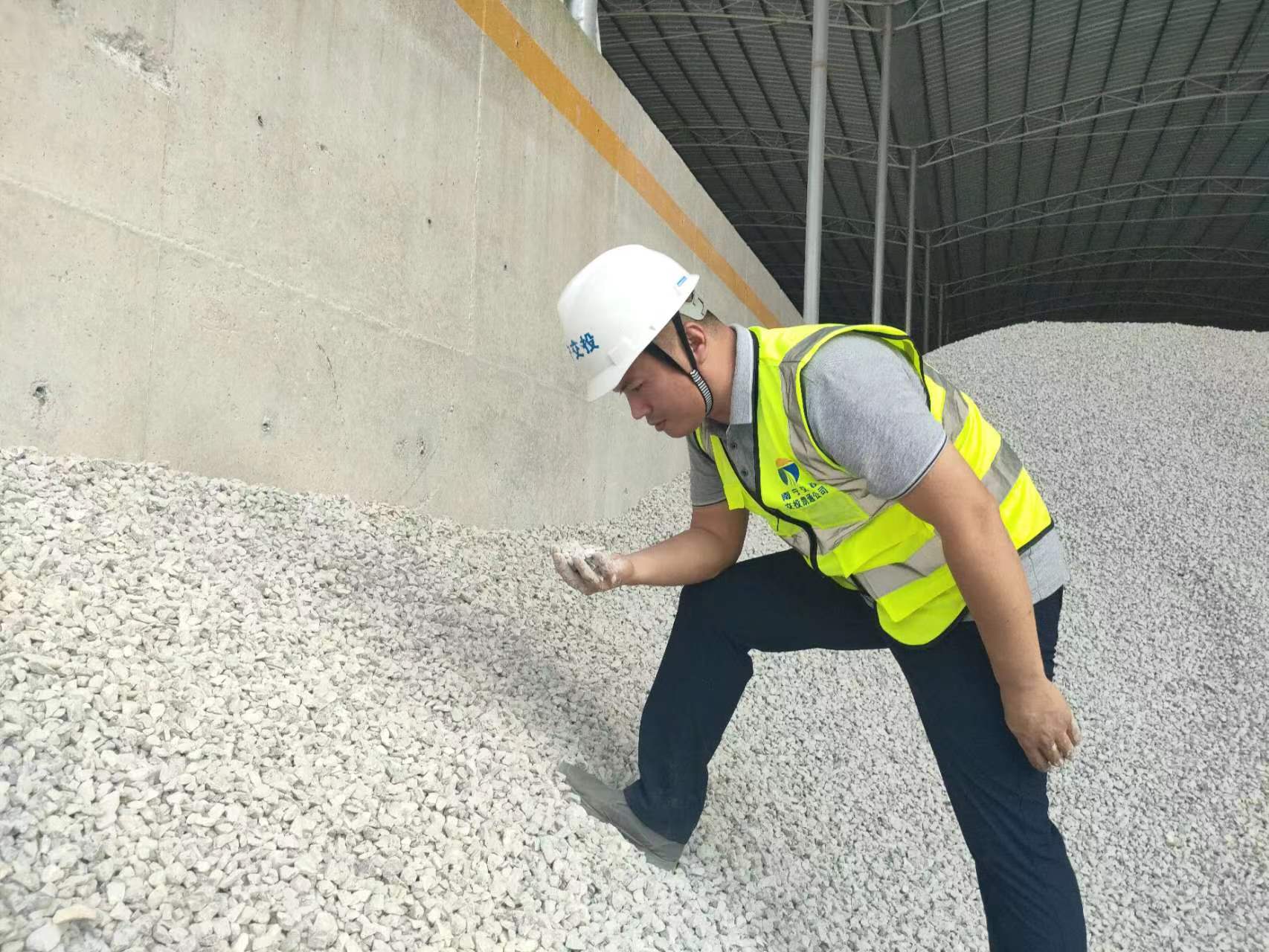 在項目的砂石倉庫,業(yè)務員們對倉庫里的石料情況進行認真比對,嚴格核驗砂石規(guī)格、品質是否符合項目要求,確保物料按需運送。他們用行動詮釋著擔當,用堅守為項目建設助力。