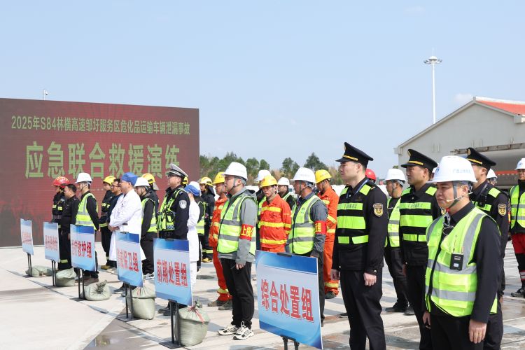 為全面提升林橫高速對(duì)服務(wù)區(qū)?;愤\(yùn)輸泄漏突發(fā)事故的應(yīng)急處置能力,加強(qiáng)“一路多方”各部門間的協(xié)同配合,保障過(guò)往司乘生命財(cái)產(chǎn)安全,3月18日,南寧交投集團(tuán)下屬南寧高速公司聯(lián)合賓陽(yáng)縣應(yīng)急局、生態(tài)局、交警、消防救援大隊(duì)、衛(wèi)生局及區(qū)執(zhí)法局二支隊(duì)四大隊(duì)、六大隊(duì)等單位,在林橫高速鄒圩服務(wù)區(qū)開展?;愤\(yùn)輸泄漏突發(fā)事故應(yīng)急聯(lián)合救援演練。