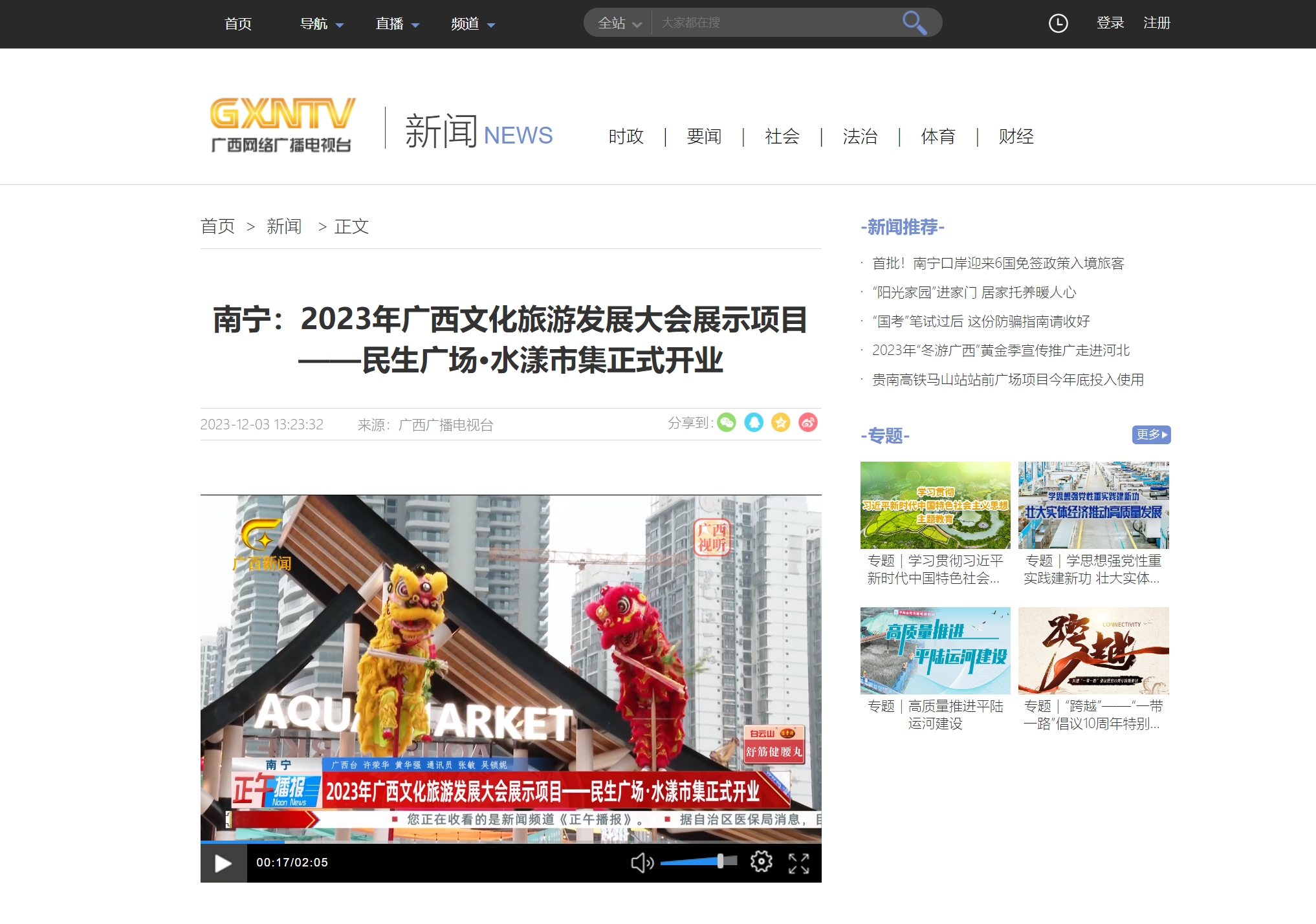 2023年廣西文化旅游發(fā)展大會(huì)展示項(xiàng)目——民生廣場(chǎng)·水漾市集正式開(kāi)業(yè)